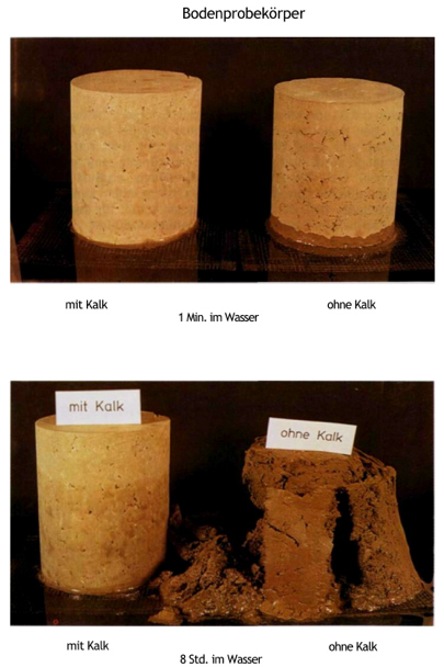 Very complex mechanical processes occur in the soil. From experience, fine-grained soils are suitable for the lime treatment.