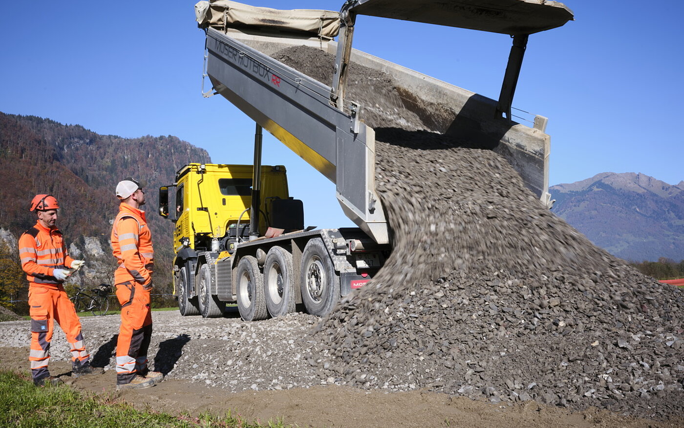Für die Stärkung der Nachhaltigkeit des ESAF und um den hohen Bedarf an Kies für die Fundationen in kurzer Zeit zu decken, erarbeiteten die Haltengut AG und die KFN gemeinsam ein Konzept für die Lieferungen, welches sich auch bestens bewährt.