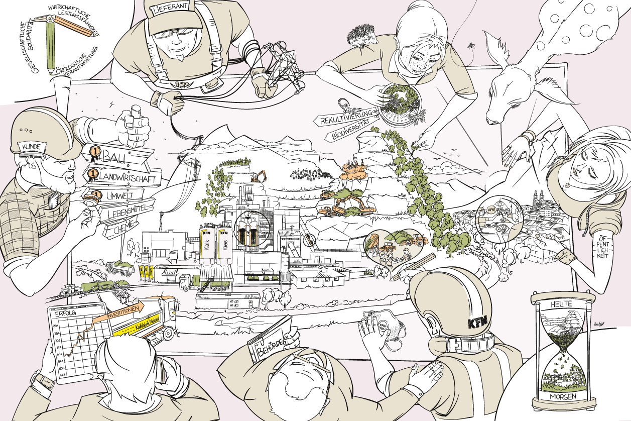 Um unser Verantwortungsbewusstsein sichtbar zu machen, haben wir eine Nachhaltigkeitskarte erarbeitet. Sie dient uns als Kompass für die Weiterentwicklung der Kalkfabrik und zeigt unsere bisherigen Bemühungen und unsere zukünftigen Ziele für eine nachhaltige Entwicklung unseres Betriebs in unserer Region auf. Die dazugehörige Broschüre fasst unsere Vorstellung einer nachhaltigen Entwicklung der Kalkfabrik Netstal zusammen.