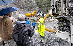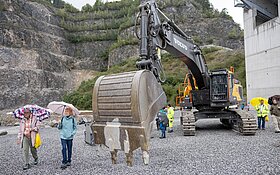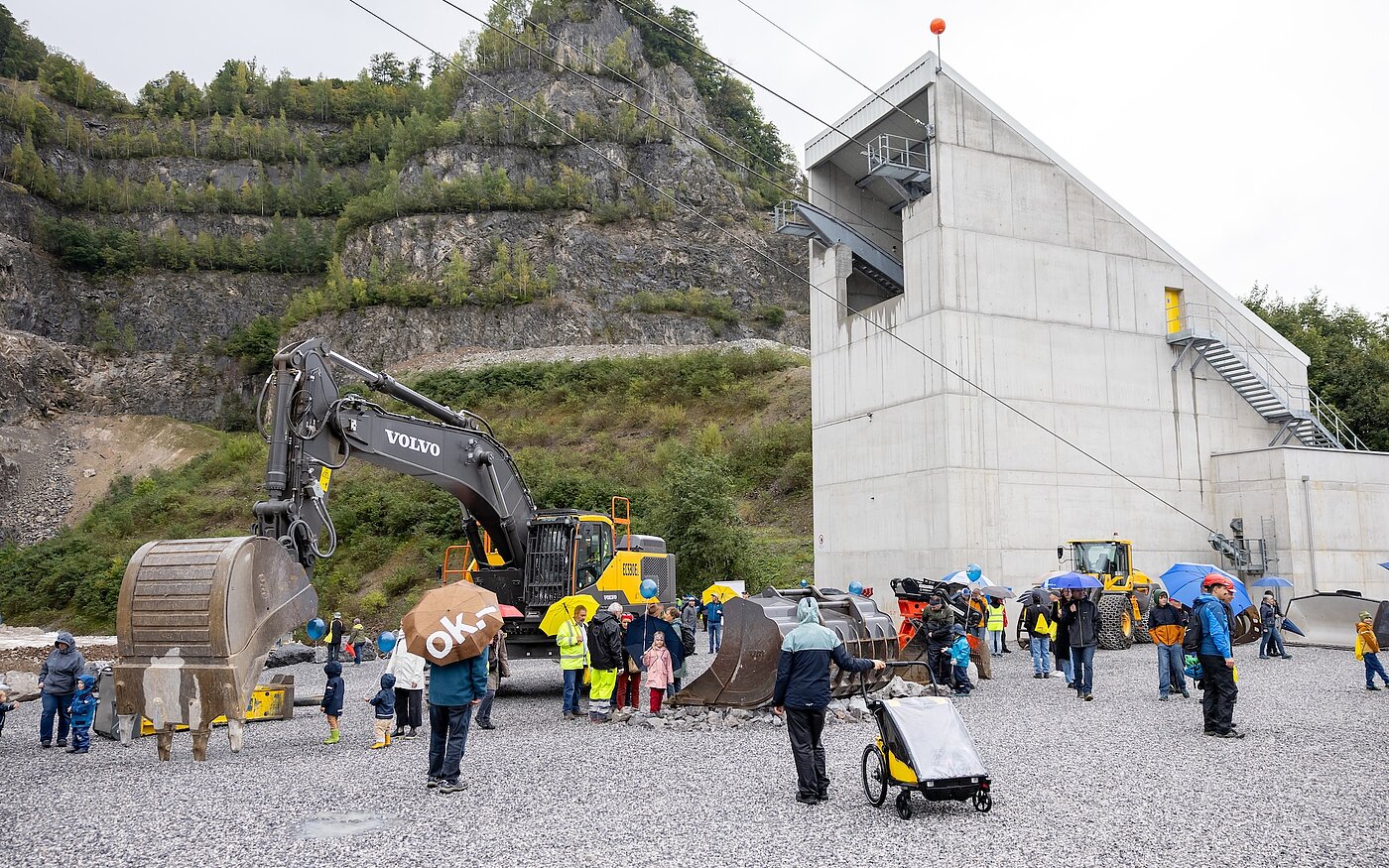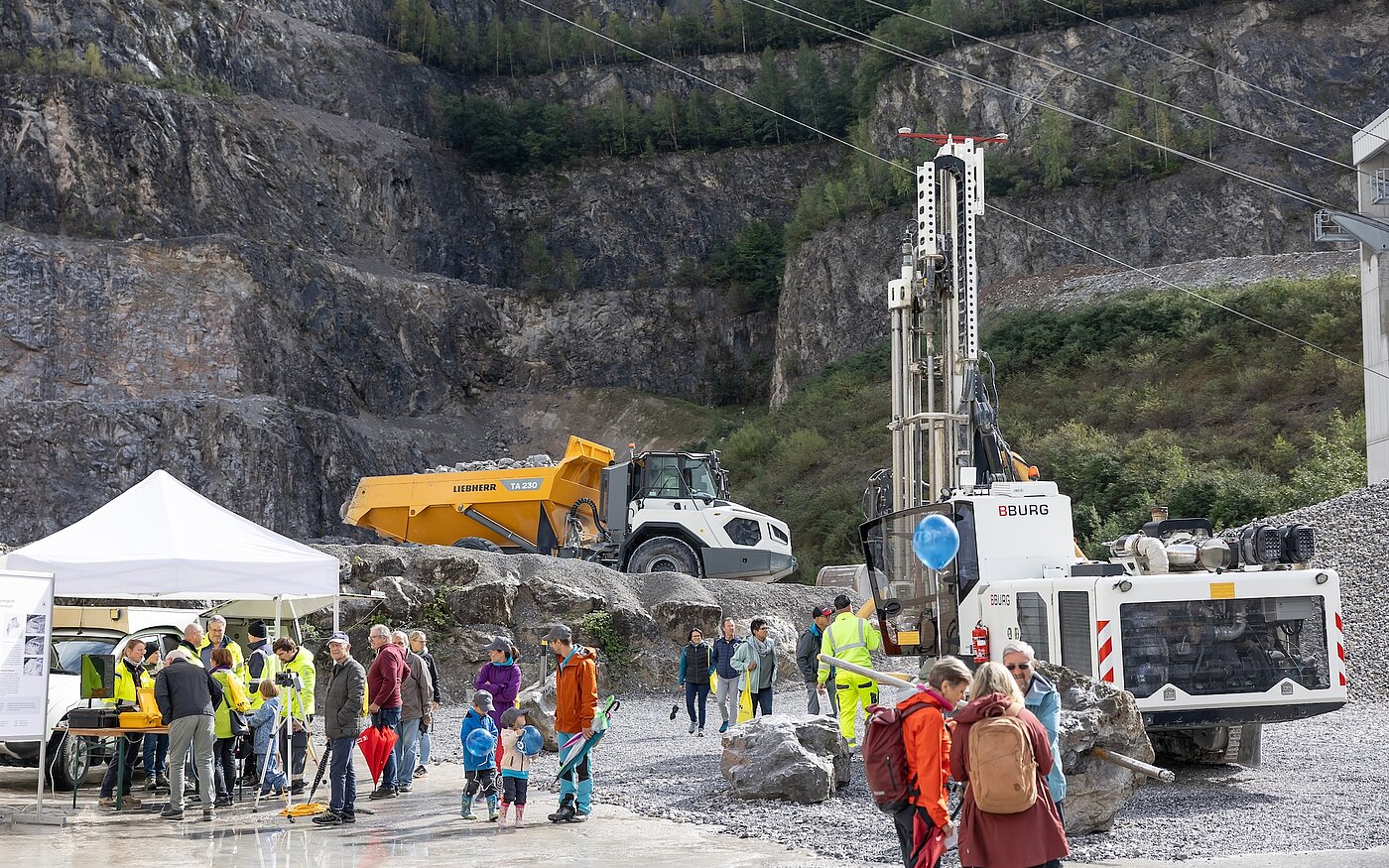 Am 27. September bot die KFN einen Jubiläumsanlass der Sonderklasse, der für spürbare Begeisterung sorgte. Von 10 bis 15 Uhr nutzten über 2000 Besucherinnen und Besucher die Chance, die Arbeit der KFN und ihrer Partner und Kunden kennenzulernen – von der Sprengung bis zur Kalkanwendung. Interessierte erhielten Einblick in laufende Entwicklungen wie die Erweiterung Gründen und Elggis Süd, konnten eine virtuelle Ofenbesichtigung erleben oder sich über Umweltund Landschaftsschutz informieren.
