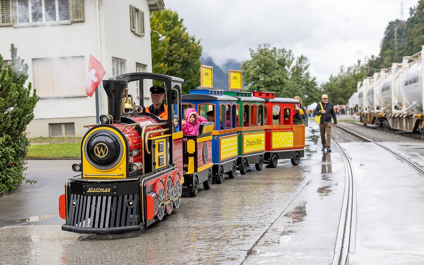 Besonders geschätzt wurde auch das vielfältige Programm für Kinder und Jugendliche: Torwandschiessen mit dem FC Netstal, ein Mini-Bagger-Erlebnis und der Mini-Zug «Chalchi- Blitz» sorgten für Spass und lachende Gesichter. So bleibt das Jubiläum des Familienunternehmens als grossartiger Anlass für Gross und Klein in Erinnerung.