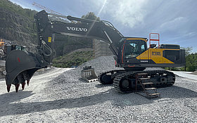 Nachdem bisher nur ein Bagger im Einsatz war, hat die KFN den Maschinenpark mit einem zweiten Bagger ergänzt. Der innovative Volvo EC530EL überzeugt durch herausragende Leistungsfähigkeit und Vielseitigkeit. Ausgestattet mit modernster Technologie bietet der 50-Tonnen-Bagger eine beeindruckende Grabtiefe und Reichweite, um auch in anspruchsvollen Situationen präzis und effizient arbeiten zu können. Seine starken Motoren und die optimierte Hydraulik sorgen für maximale Produktivität bei gleichzeitig geringem Kraftstoffverbrauch. Durch seine Robustheit und Zuverlässigkeit ist der Volvo EC530EL die ideale Wahl für den Einsatz im Abbau von Kalkstein und bei vielen weiteren Arbeiten.