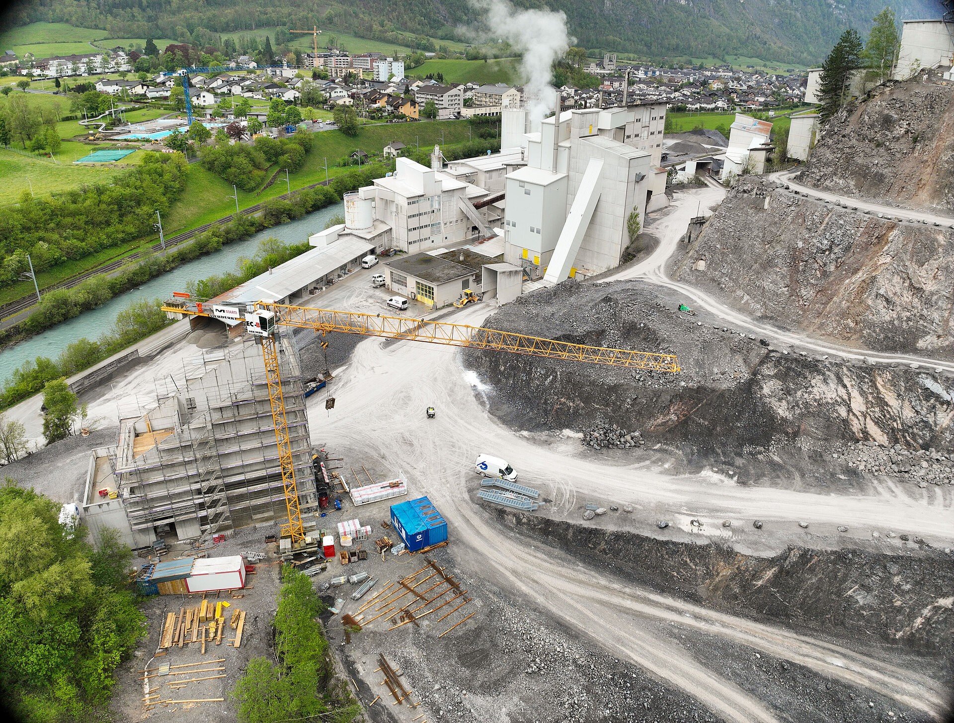 Mit der Inbetriebnahme einer neuen zweistufigen Brechanlage für Ofensteine und zwei grosse Vorratssilos werden drei bisher eingesetzte Brechanlagen sowie die Materialseilbahn ersetzt.