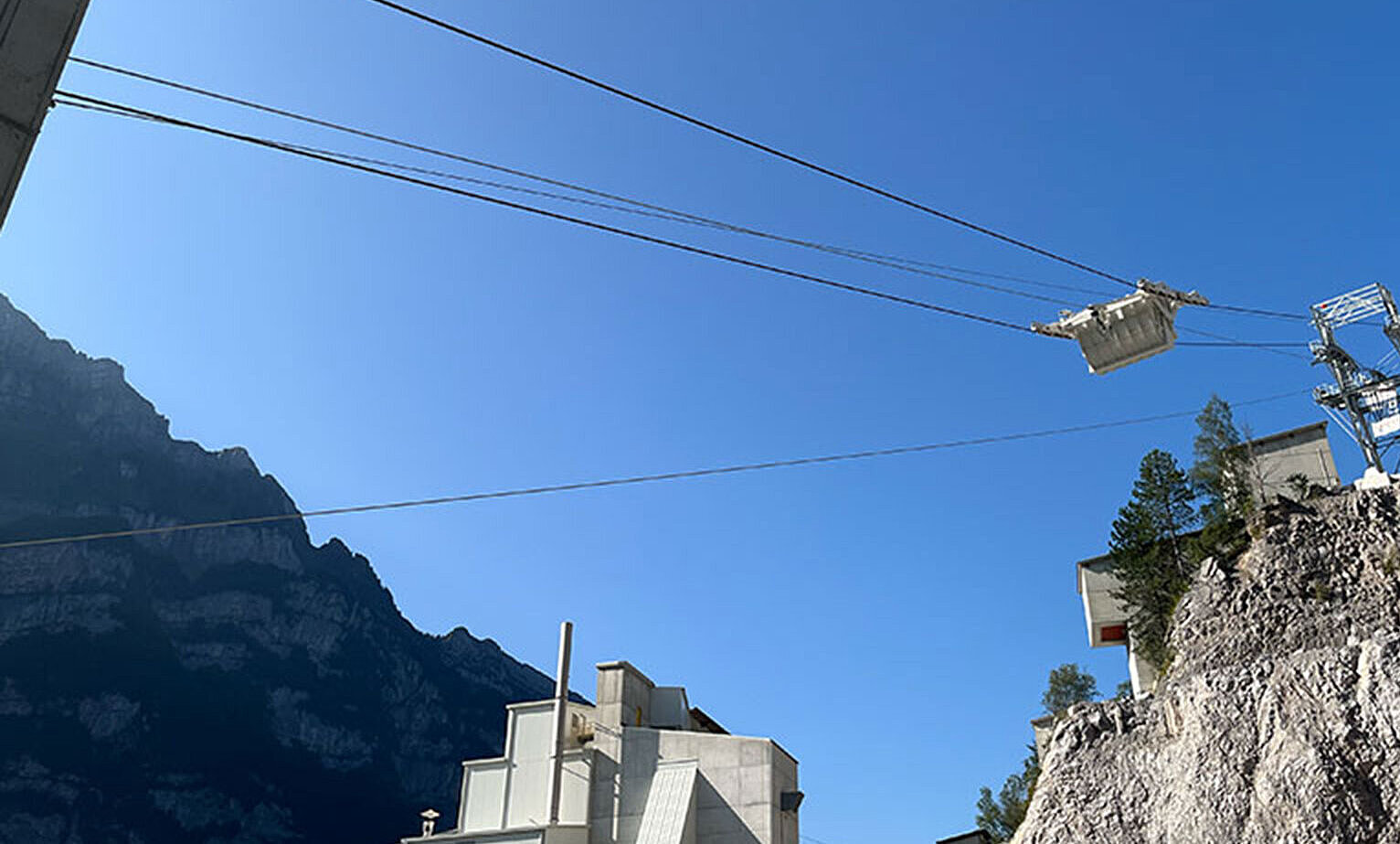 Die KFN beendet die Arbeiten am Erweiterungsprojekt mit der feierlichen Einweihung der soeben fertiggestellten Seilbahn und startet mit dem Kalkabbau in Gründen und Elggis Süd. Damit ist die Rohstoffversorgung am Standort für weitere 50 Jahre gesichert.