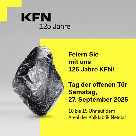 125 Jahre Kalkabbau in Netstal, 125 Jahre starke Verbindungen zur Region, 125 Jahre Pioniergeist und Fortschritt. Die KFN blickt auf ein stolzes Jubiläum. Und das möchten wir mit Ihnen feiern!